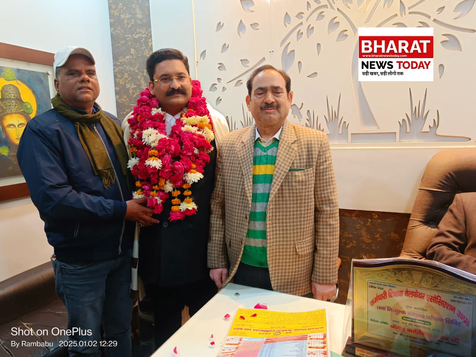 निशुल्क स्वास्थ्य परीक्षण शिविर की सफलता में सहयोग प्रदान करने के लिए कार्तकेय यादव एडवोकेट को कर्मचारी शिक्षक एसोसिएशन ने सम्मानित किया