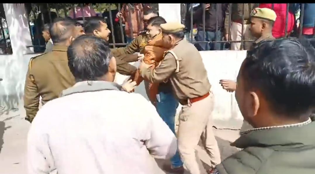 एसएसपी ऑफिस के बाहर भिड़े दरोगा और सिपाही,दे दनादन चले लात-घूंसे