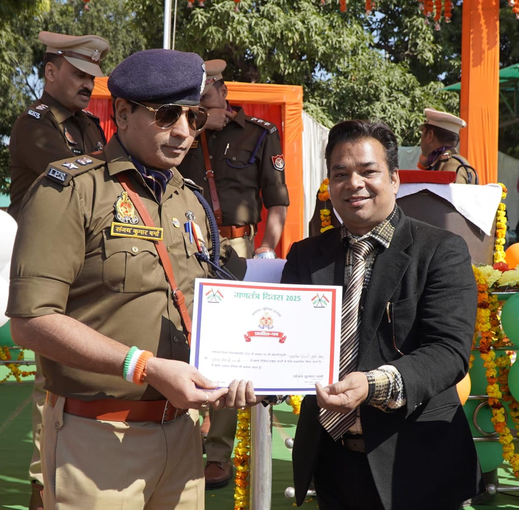 पुलिस मित्र के रूप सर्पमित्र डॉ आशीष त्रिपाठी सम्मानित वरिष्ठ पुलिस अधीक्षक ने गणतंत्र दिवस पर किया सम्मानित