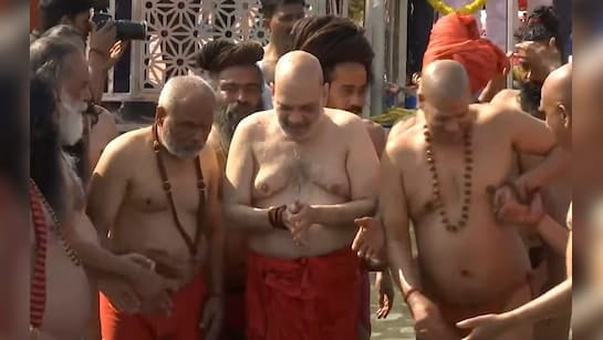 केंद्रीय गृह मंत्री अमित शाह ने साधु-संतों के साथ संगम में किया स्नान,गंगा पूजन किया