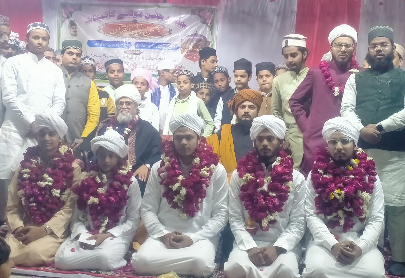 जुनैद वारसी,मोईन चिश्ती,मो.उस्मान,मो.बिलाल व मो.हिफजा़न की हुई दस्तारबंदी जश्ने मौला-ए-कायनात व जश्ने दस्तार हिफ्जु़ल क़ुरान पाक