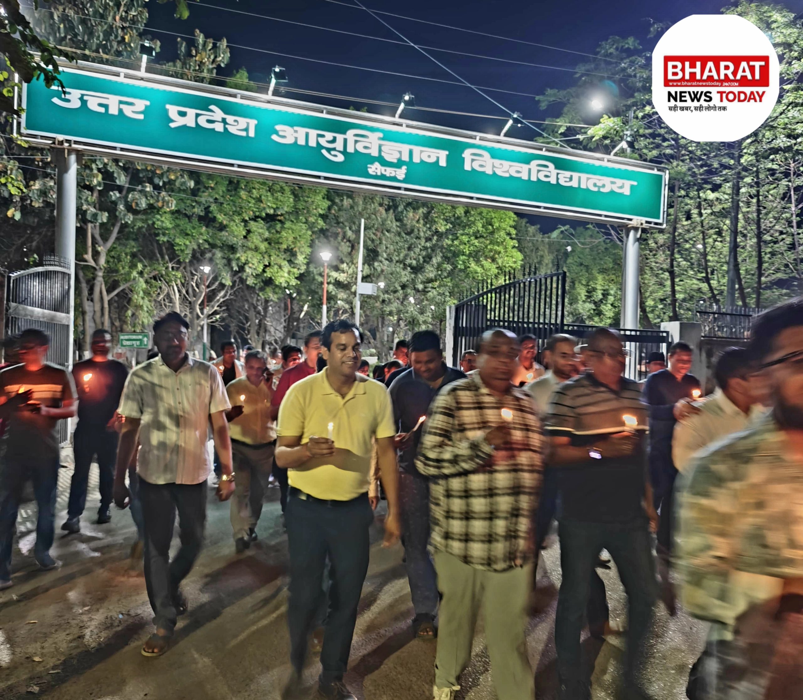 यूपीयूएमएस में वेतन संरचना में असमानता के लिए हुआ विरोध प्रदर्शन विश्वविद्यालय के डॉक्टर्स ने कैंडल मार्च निकालकर शांतिपूर्ण तरीके से अपनी मांगों के लिए आवाज उठाई।