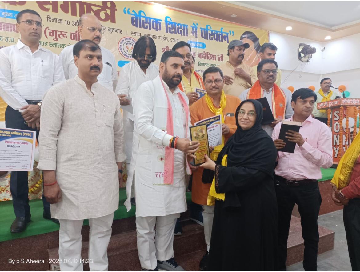 इटावा। प्राथमिक प्रशिक्षित स्नातक एसोसिएशन इटावा के तत्वावधान में बेसिक शिक्षा में परिवर्तन विषय पर हुई संगोष्ठी में नगर क्षेत्र की प्रधानाध्यापिका को वेस्ट टीचर