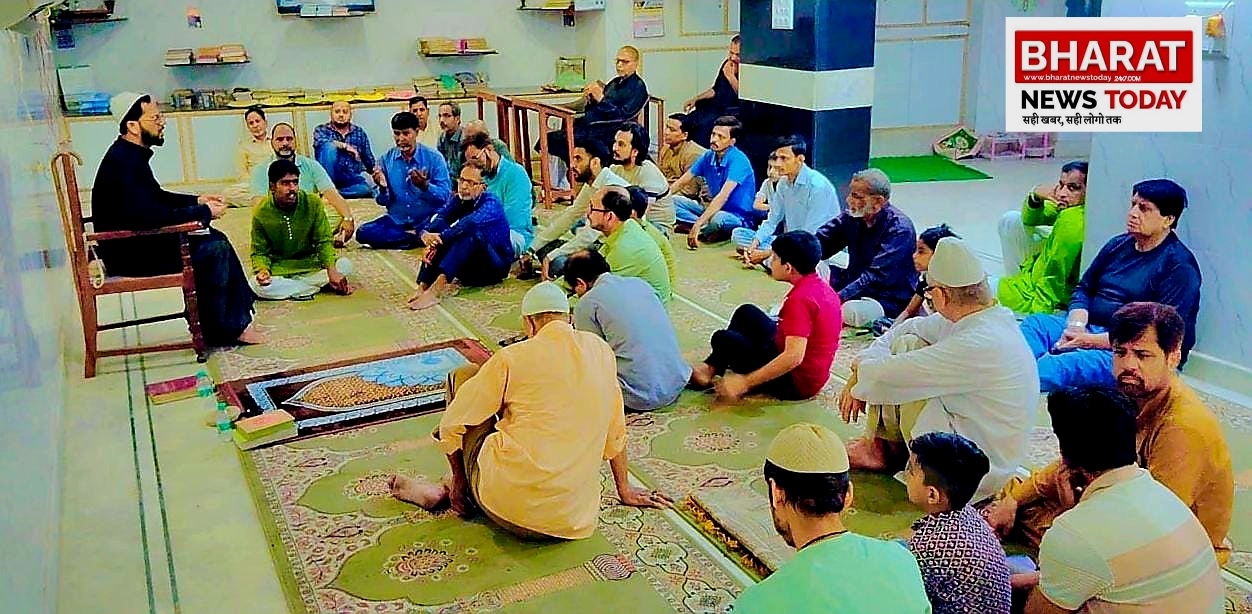 मजलिस में तक़रीर करते मौलाना सैयद अनवारुल हसन ज़ैदी। इमाम जाफर सादिक़ को इल्म में महारथ हासिल थी इटावा। छठवें इमाम जाफर सादिक़ अलैहे सलाम