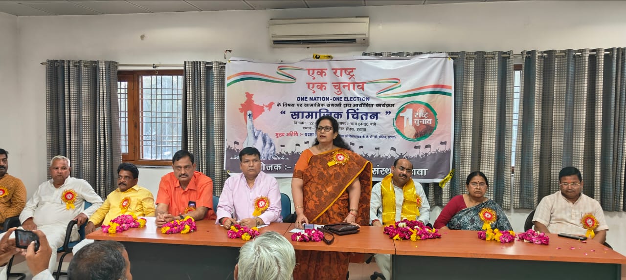 इटावा। एक राष्ट्र एक चुनाव को लेकर सिंचाई विभाग डाक बंगला में भाजपा जिला अध्यक्ष अरुण गुप्ता की अध्यक्षता में एनजीओ संगठनों द्वारा विशाल संगोष्ठी