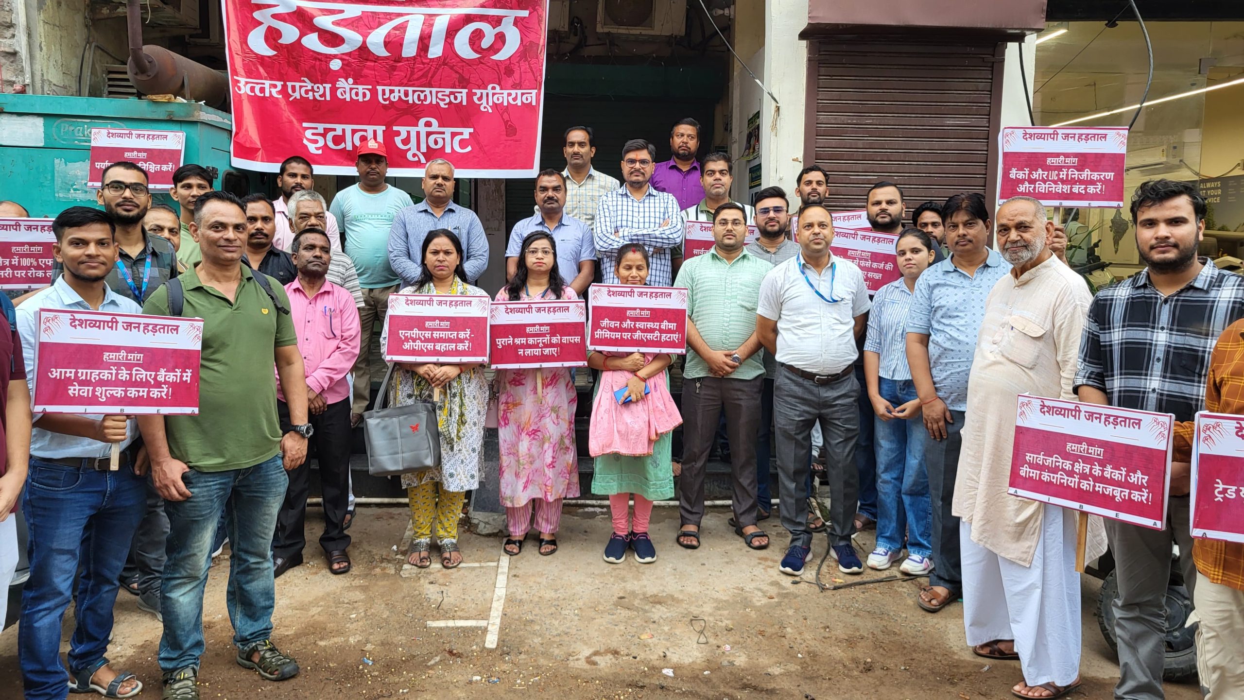 सरकार की आर्थिक एवं श्रमिक विरोधी नीतियों के विरोध में ऑल इंडिया बैंक एम्पलाइज एसोसिएशन के इटावा जिले के सभी बैंकों के कर्मचारियों ने पंजाब