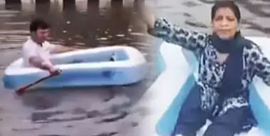 दिल्ली की सड़कों पर चलने लगी नाव,जलभराव के बाद आप नेताओं ने रेखा सरकार पर बोला हमला