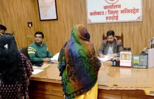 हरदोई। आज कलेक्ट्रेट कक्ष में जन सुनवाई के दौरान जिलाधिकारी अनुनय झा ने आमजन की समस्याओं को सुना तथा जन सुनवाई मे आज कुल 82 शिकायते प्राप्त हुई, जिसके त्वरित निस्तारण के निर्देश सम्बन्धित अधिकारियों को दिए। जिलाधिकारी ने कहा कि प्रत्येक शिकायत का निस्तारण समयबद्व और गुणवत्तापूर्ण पूर्ण हो। जन सुनवाई मे प्राप्त कुछ शिकायतों का जिलाधिकारी ने मौके पर ही समाधान किया।