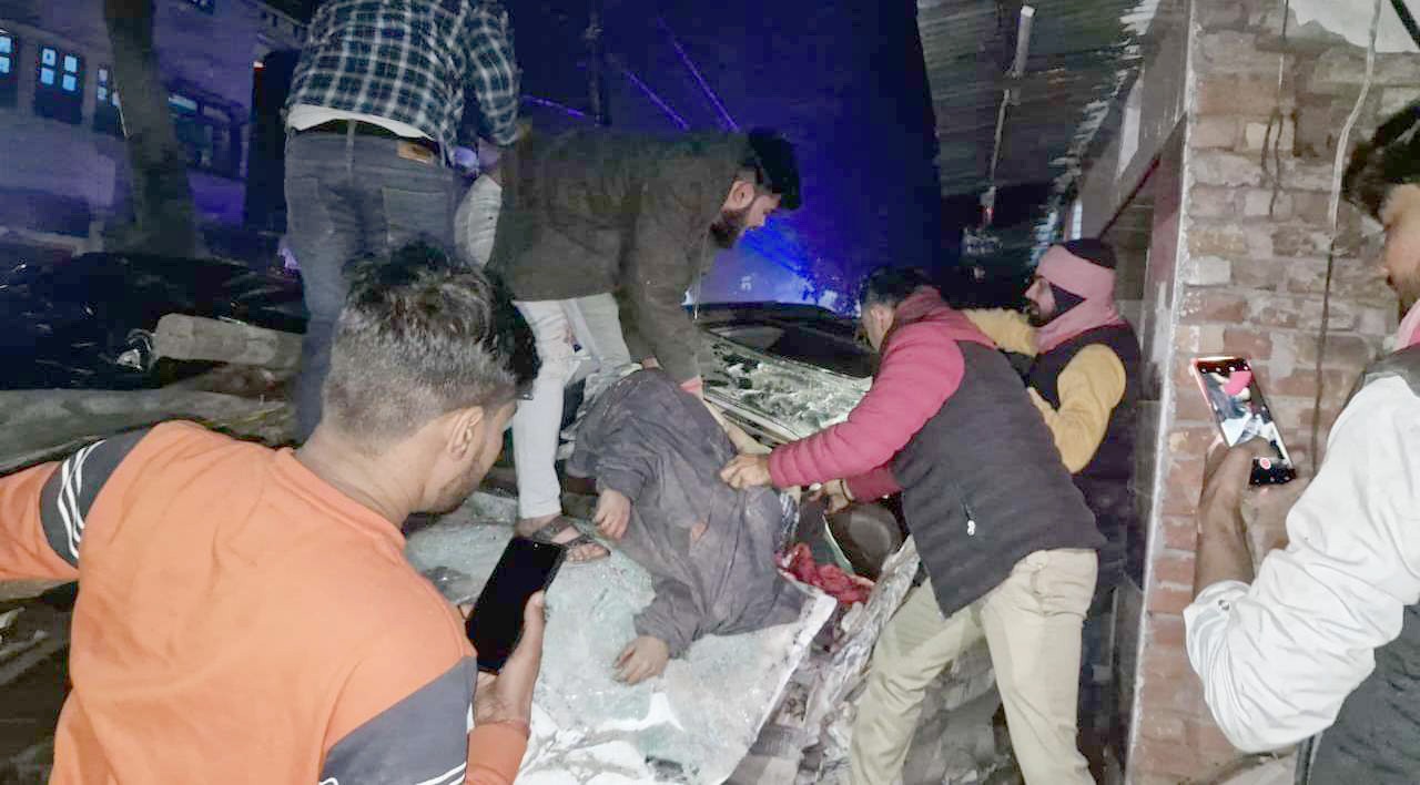इटावा-कन्नौज हाइवे पर बीती गुरुवार की रात्रि खम्बे के पोल तोड़ते हुए गाड़ी दुकान समेत घर में घुसी,