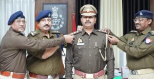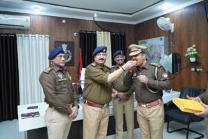 · एसएसपी द्वारा नवनियुक्त निरीक्षक को कंधे पर नया स्टार लगाया गया।