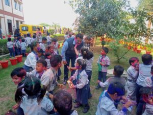 उन्होंने बच्चों को सुरक्षित होली खेलने का मंत्र देते हुए विशेष रूप से सलाह दी कि वे केवल उच्च गुणवत्ता वाले और सुरक्षित रंगों का ही प्रयोग करें ताकि किसी के स्वास्थ्य को नुकसान न पहुँचे। उन्होंने मिलावटी और हानिकारक रसायनों से दूर रहकर प्राकृतिक तरीके से खुशियां बांटने की अपील की। कार्यक्रम के समापन पर प्रबंधक महोदय ने सभी विद्यार्थियों, उनके अभिभावकों और पूरे विद्यालय परिवार को होली की आत्मीय शुभकामनाएं देते हुए उनके उज्ज्वल भविष्य की कामना की।
