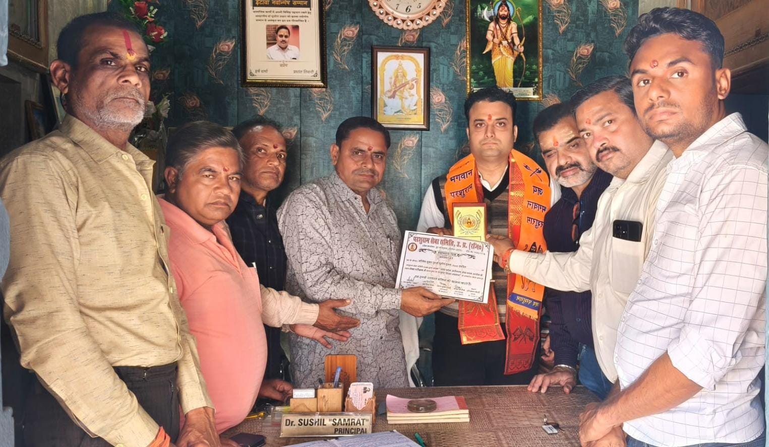 इटावा /इकदिल, परशुराम सेवा समिति उ.प्र. (रजि.) की एक आवश्यक बैठक प्रदेश कार्यालय मोहल्ला कायस्थान इकदिल में सम्पन हुई । बैठक की अध्यक्षता परशुराम सेवा समिति के प्रदेश अध्यक्ष डॉ.सुशील सम्राट ने की तथा संचालन प्रदेश महामंत्री जयशिव मिश्रा ने किया l बैठक में क़स्बा निवासी प्रमुख व्यवसायी सुशील कुमार शुक्ला (किसान खाद भंडार) के पुत्र अभिषेक शुक्ला का उत्तर प्रदेश अधीनस्थ सेवा चयन आयोग के तहत लेखा परीक्षक के पद पर चयन होने पर परशुराम पट्टीका, सम्मान पत्र व स्मृति चिन्ह देकर उत्कृस्ट शिक्षा सम्मान से सम्मानित किया l प्रदेश अध्यक्ष डॉ.सुशील सम्राट ने कहा कि इकदिल के लिए यह गौरव की बात है l ऐसे युवाओं का मनोबल बढ़ाकर प्रोत्साहित करना समिति का मुख्य उद्देश्य है l बैठक में होली मिलन कार्यक्रम 8 मार्च दिन रविवार को प्रात: 10 बजे से एस आर एल टी कालेज इकदिल के सभागार में आयोजित करने का निर्णय लिया गया l इसके साथ परशुराम जन्मोत्सव 20 अप्रैल को प्रकश कोल्ड स्टोरेज इकदिल में मनाये जाने का निर्णय सर्व सम्मति से लिया गया l औरैया में रक्तदान आयोजित करने पर भी विचार किया गया l इस अवसर पर संरक्षक हरि प्रकाश चौधरी, प्रदेश महामंत्री विनय कुमार द्विवेदी, प्रदेश कोषाध्यक्ष गोपालजी मिश्रा, सदस्य रवि शंकर चौधरी, जिला महामंत्री राज तिवारी आदि पदाधिकारी उपस्थिति थे l