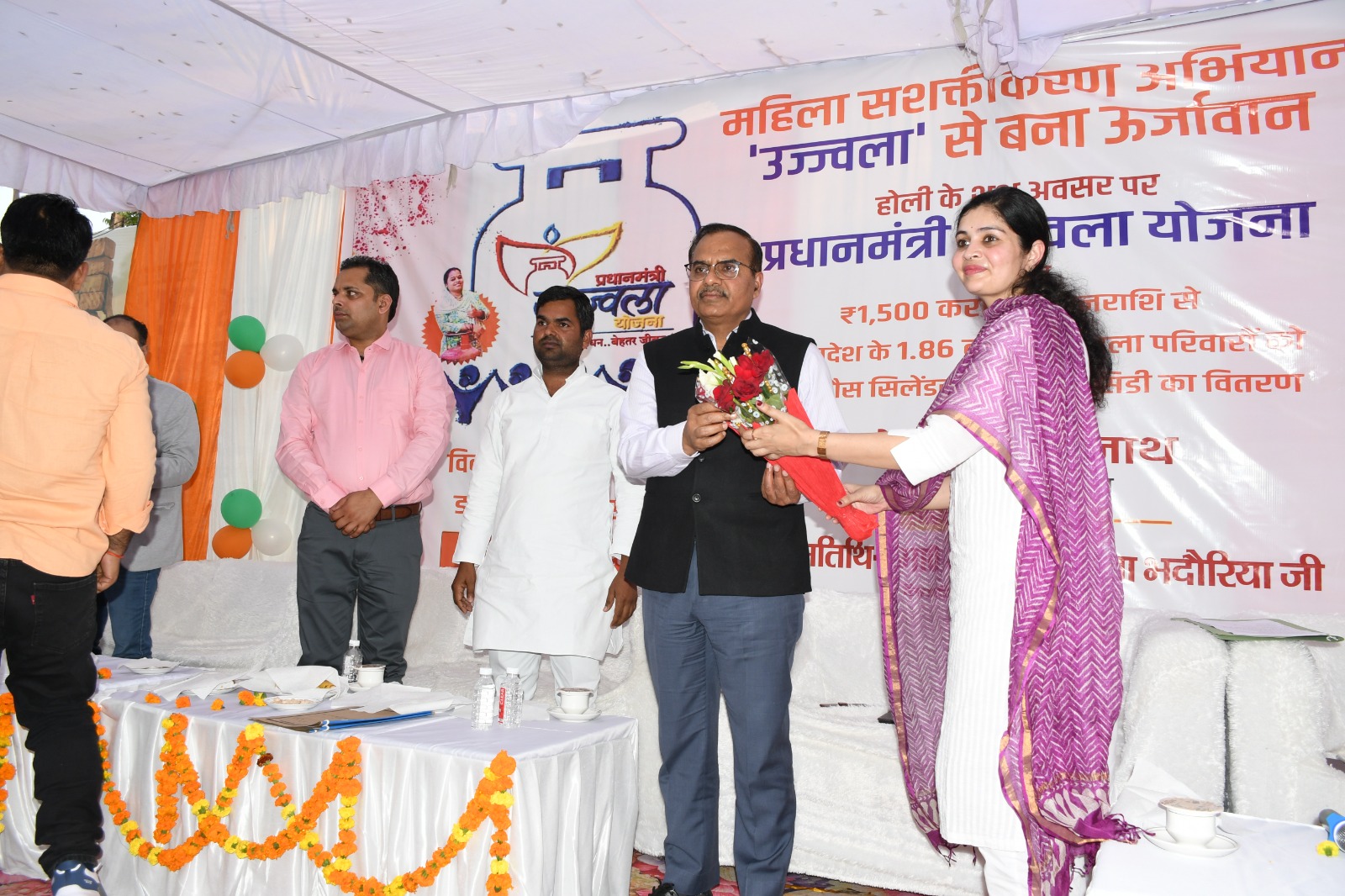 जिलाधिकारी ने बताया कि सरकार द्वारा सभी को होली के त्यौहार पर मुफ्त सिलेंडर दिया जा रहा है। उन्होंने बताया कि जनपद में कुल 161000 उज्जवला कनेक्शन हैं, जिसमें से 121000 लाभार्थियों द्वारा के0वाई0सी0 करा ली गई है, जिन्होंने के0वाई0सी0 करा ली है उन्हीं को मुफ्त सिलेंडर का लाभ दिया जाएगा। उन्होंने कहा कि लाभार्थी महिलाओं को उज्ज्वला योजना के अंतर्गत एक भरा सिलेंडर, चूल्हा, पाइप व रेगुलेटर दिया जाएगा। उन्होंने कहा कि उज्ज्वला योजना के लाभार्थियों को दो सिलेंडर प्रत्येक वर्ष होली व दीवाली के त्यौहार पर  मुख्यमंत्री द्वारा उपहार के रूप में दिए जाते है। उन्होंने कहा कि योजना का लाभ जनपद के पात्र लाभार्थियों को अवश्य मिलें।