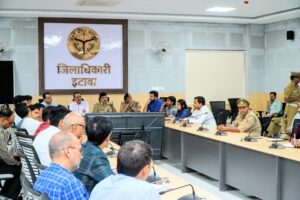 इटावा, 20 मार्च 2026 – जिले में एलपीजी और पेट्रोलियम पदार्थों की आपूर्ति को सुचारु एवं पारदर्शी बनाने के लिए आज कलेक्ट्रेट सभागार में उच्चस्तरीय बैठक संपन्न हुई। जिलाधिकारी शुभ्रान्त कुमार शुक्ल एवं वरिष्ठ पुलिस अधीक्षक बृजेश कुमार श्रीवास्तव की अध्यक्षता में हुई इस बैठक में पेट्रोल पंप संचालकों, गैस एजेंसियों और तेल कंपनियों (HPCL, BPCL, IOC, टोरंट गैस) के प्रतिनिधि शामिल हुए।