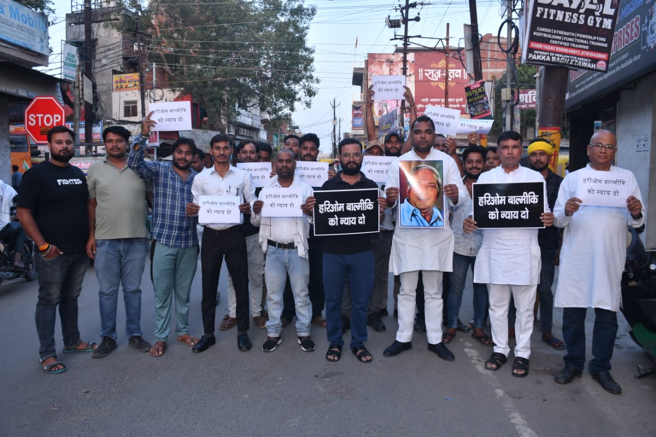 इटावा उत्तर प्रदेश कांग्रेस कमेटी के सदस्य प्रशांत तिवारी ने हरि ओम बाल्मिकी की हत्या के विरोध में महेरा चुंगी चौराहा से बाल्मिकी मंदिर तक