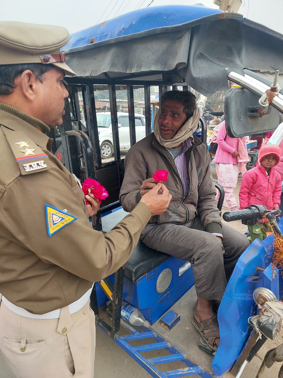 नियम तोड़ने वालों को पुलिस ने थमाया गुलाब, समझाया- ‘घर पर कोई कर रहा है आपका इंतजार