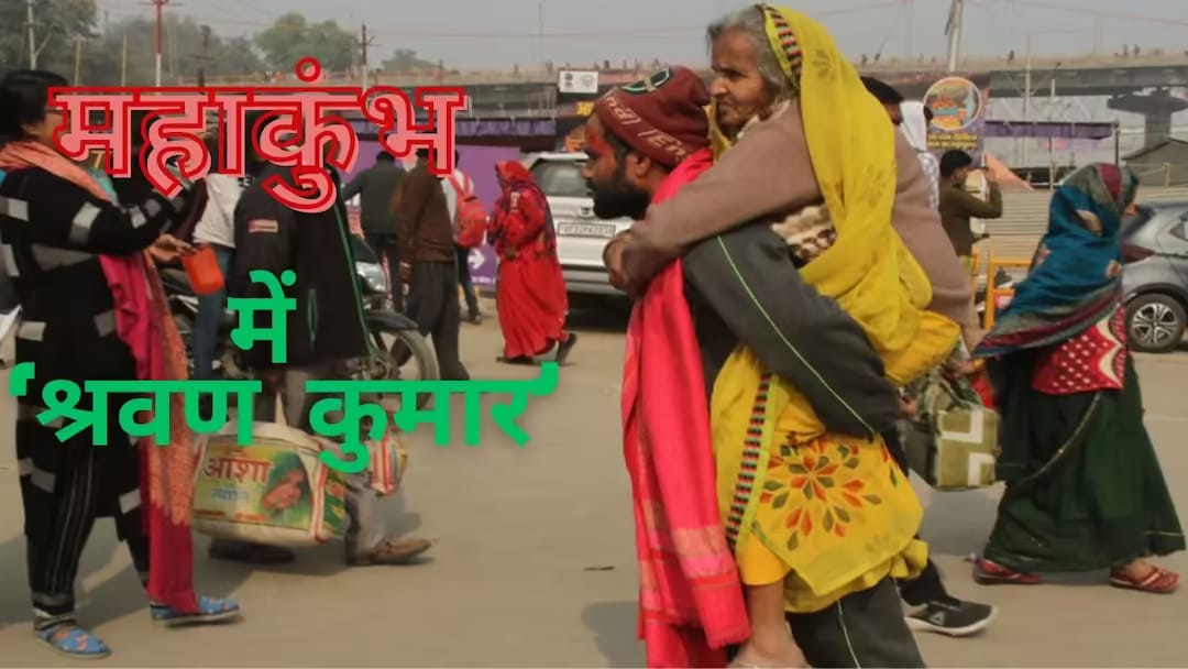 बुजुर्ग मां की महाकुंभ में थी संगम में आस्था की डुबकी लगाने की इच्छा,बेटा बना श्रवण कुमार,मां को पीठ पर लादकर पहुंचे संगम,पूरा किया सपना