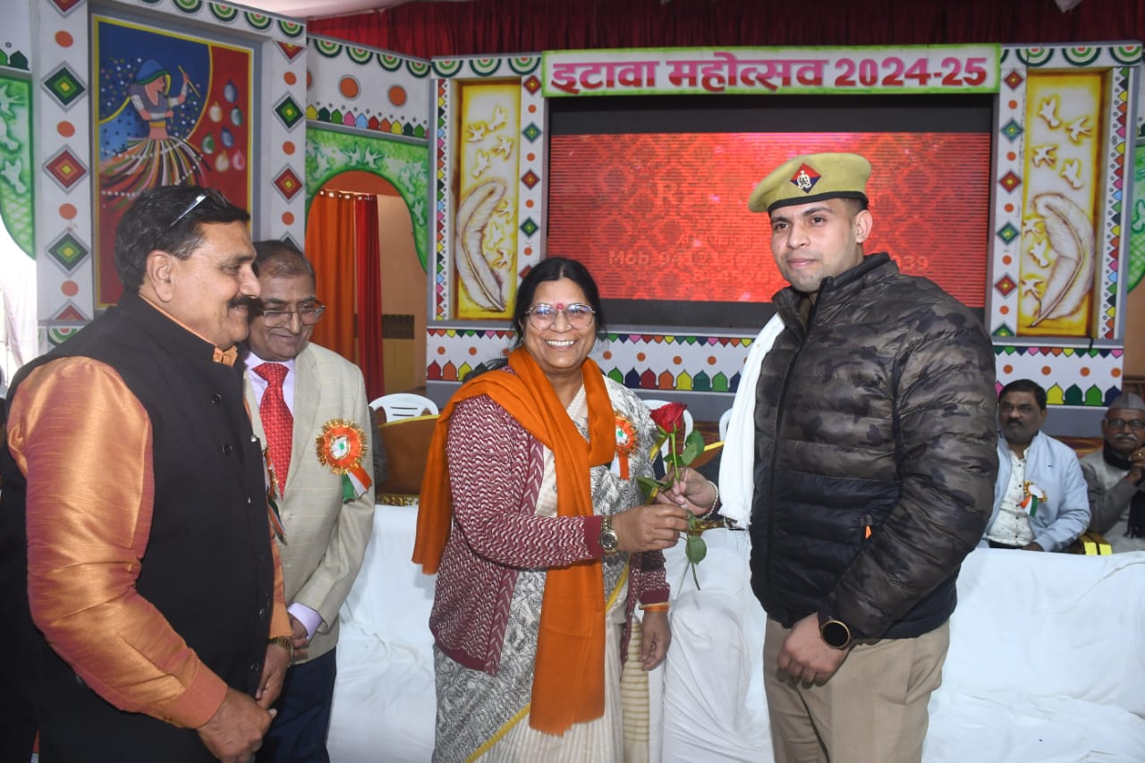 जनपद इटावा प्रेस क्लब इटावा के तत्वाधान में नुमाइश पाण्डाल में आयोजित पत्रकार सम्मेलन व सम्मान समारोह में मुख्य अतिथि श्रीमती सरिता भदौरिया विधायिका सदर