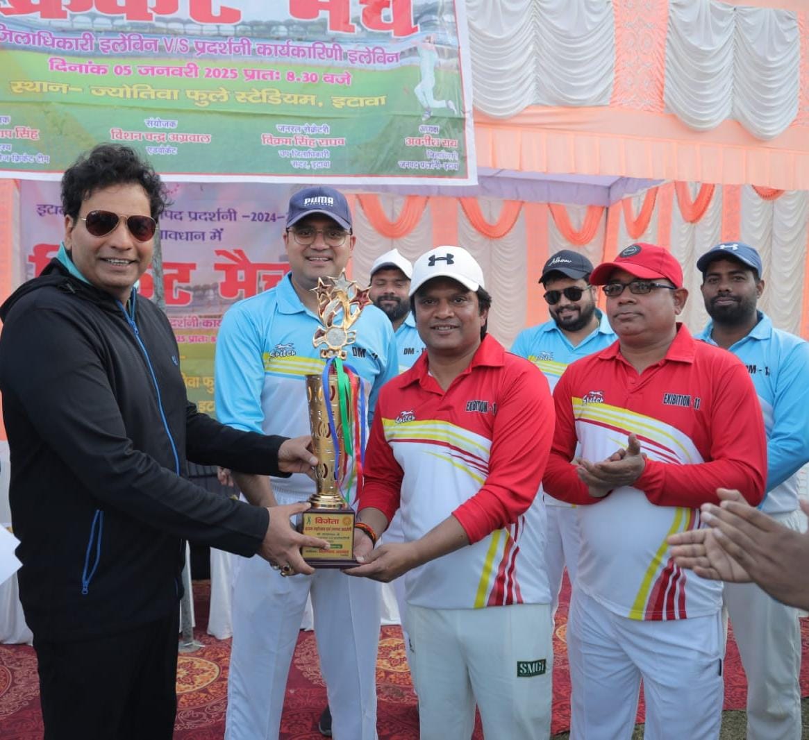 इटावा महोत्सव एवं प्रदर्शनी के तत्वाधान में आयोजित क्रिकेट टूर्नामेंट के फाइनल मुकाबले में टीचर्स क्लब ने मोतीझील क्रिकेट क्लब को 12 रन से हराकर