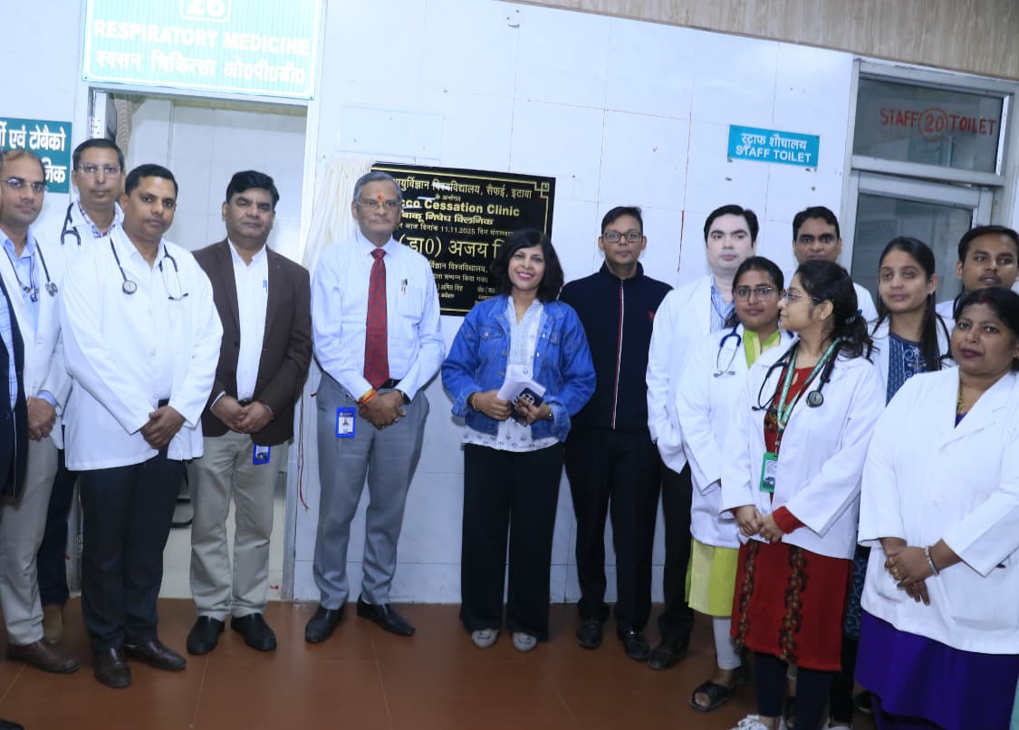 सैफई (इटावा), 12 नवम्बर 2025। उत्तर प्रदेश आयुर्विज्ञान विश्वविद्यालय (यूपीयूएमएस), सैफई के श्वसन रोग विभाग के तत्वावधान में “तंबाकू निषेध क्लिनिक” का शुभारंभ माननीय कुलपति