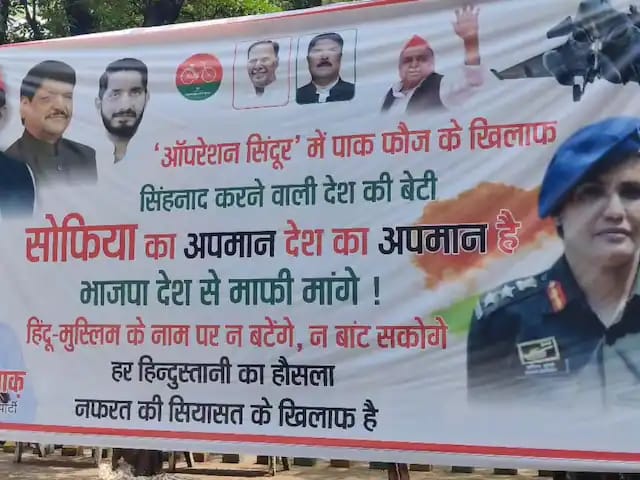 कर्नल सोफिया कुरैशी के अपमान पर सपा का पोस्टर,हिन्दू-मुस्लिम के नाम पर न बटेंगे,न बांट सकोगे